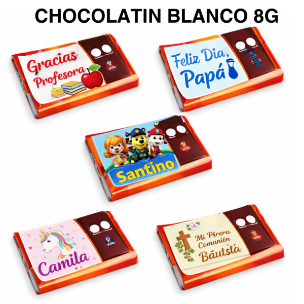 Perfectos para transformar un simple chocolate en un producto listo para vender. Ideales para colocar stickers o láminas y crear souvenirs únicos para todo tipo de eventos.